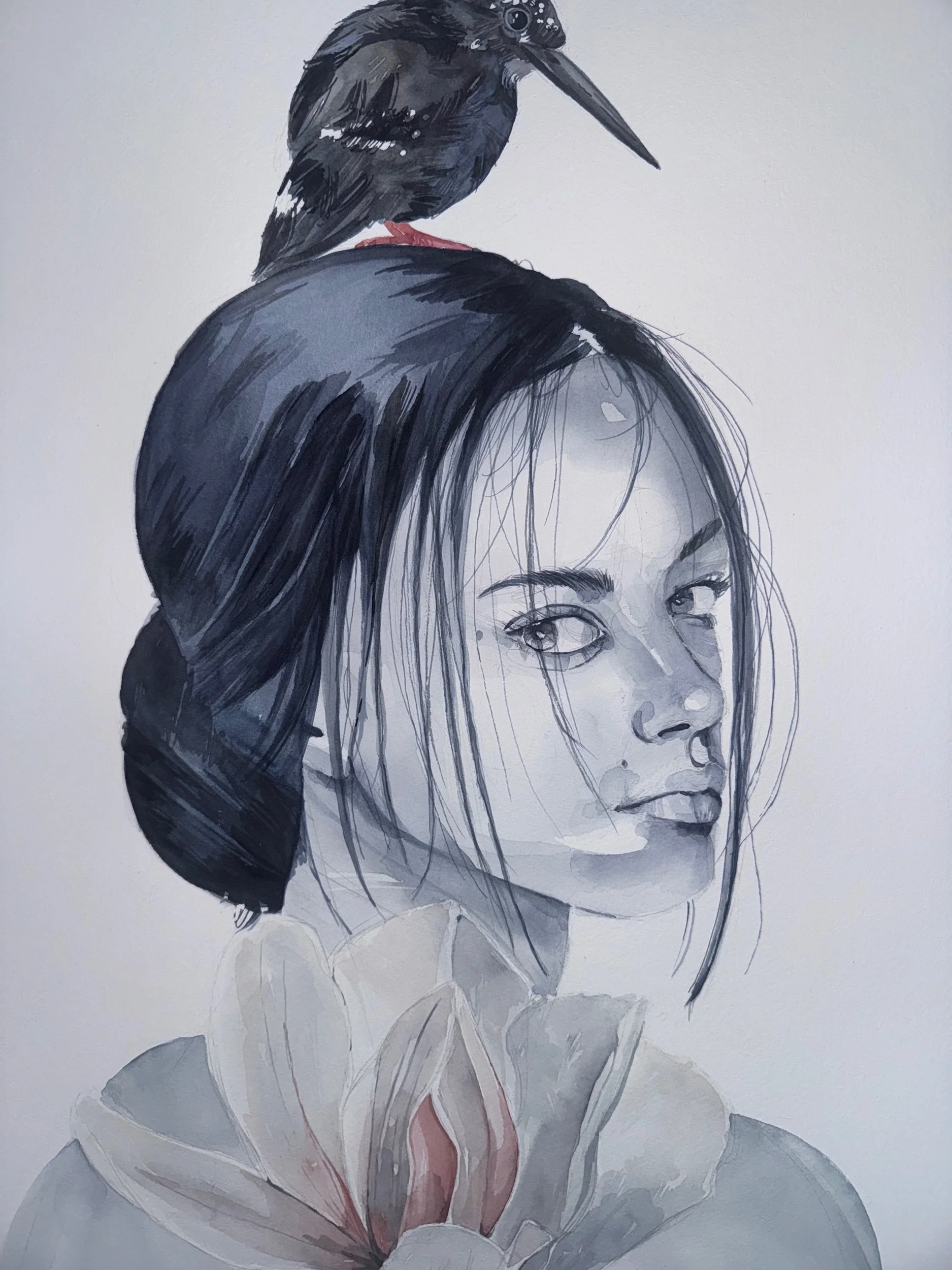 Ich male auf hochwertigem Papier von Arches und Canson Moulin du Roy, mit feinsten Aquarellfarben, die in Tiefe und Leuchtkraft bestehen. So entstehen authentische Kunstwerke, die die Handschrift des Moments tragen – echt, fühlbar und voller Leben.